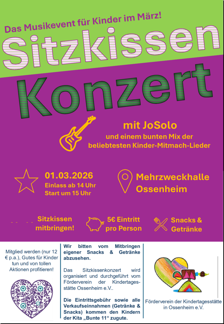 Nach dem großen Erfolg im Jahr 2014 soll auch in diesem Jahr am Samstag, den 21.10.2017 im Bürgerhaus in Ossenheim wieder ein Konzert mit dem bekannten Kinderliedermacher Fredrik Vahle stattfinden. Nähere Details finden Sie hier in Kürze.